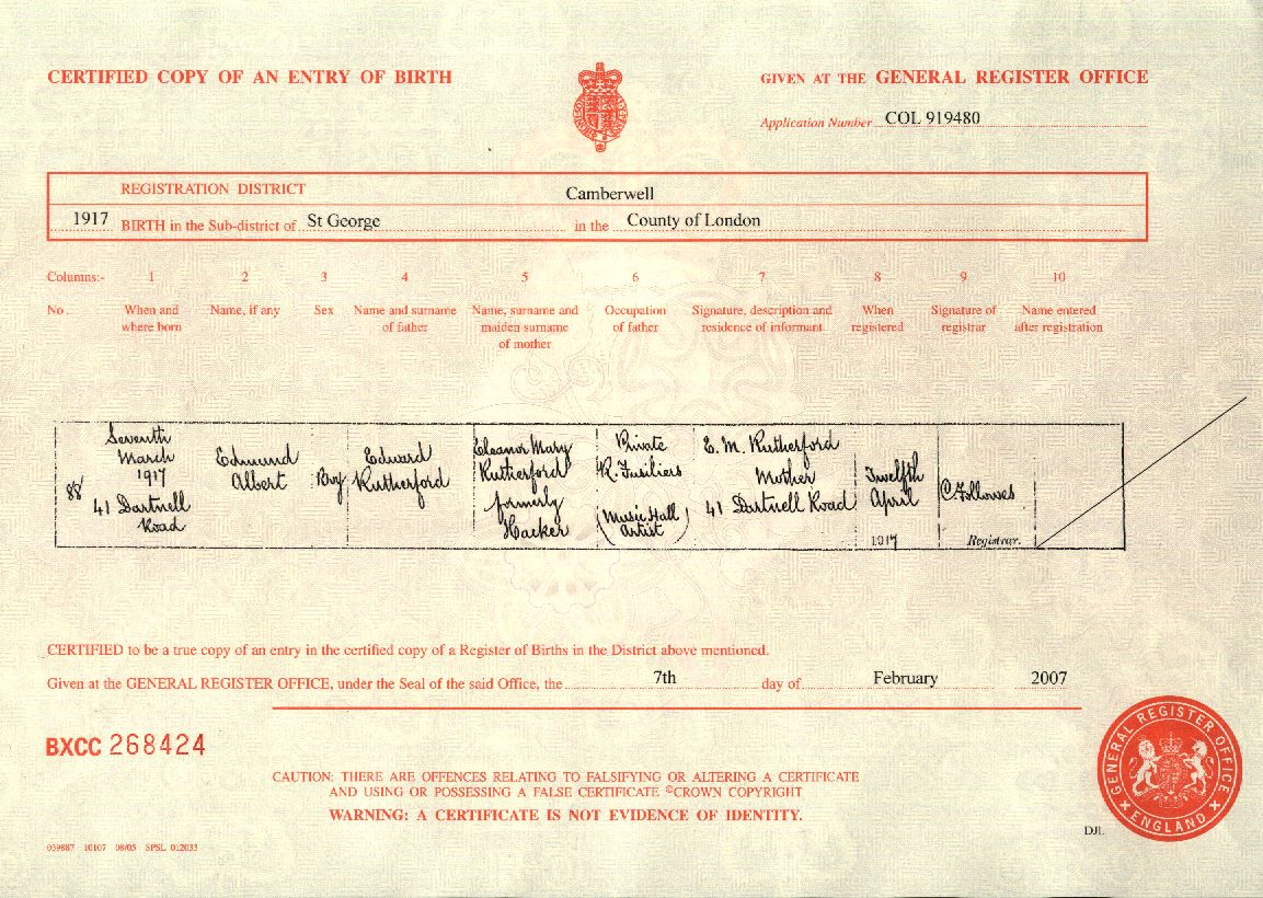 Birth Certificate 1917 EA Rutherford
